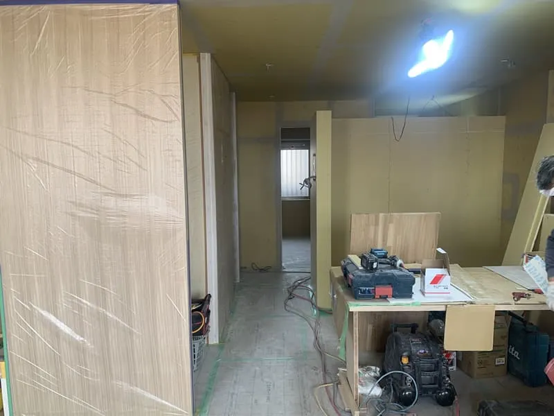 神戸海岸通ハーバーフラッツのリノベーション計画⑤キッチンと造作箇所、完成前の様子