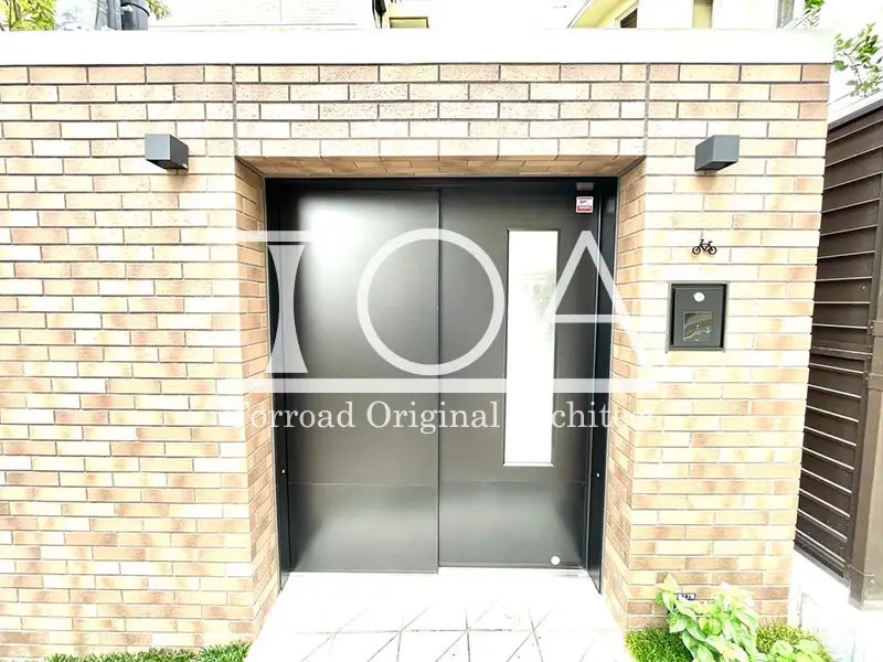 『グランドメゾン神戸北野坂』は、「神戸市中央区山本通2丁目」にある総戸数16戸、株式会社新井組施工、2022年11月竣工のマンションです。建物は地上7階建てで、1階がエントランスと駐車場スペースになっています。外観は、北野坂を異人館街へと歩く人々が仰ぎ見る建築として、シンボリックな存在感を追求。洋館のレンガ造りを思わせる重厚な意匠に軽快なコーナーサッシを差し込むことで、クラシカル・モダンの佇まいに。コーナーサッシ部ではスラブの水平ラインを強調し、1層1層が区切られたように演出。邸宅が積み重なった集合体であることを感じさせます。